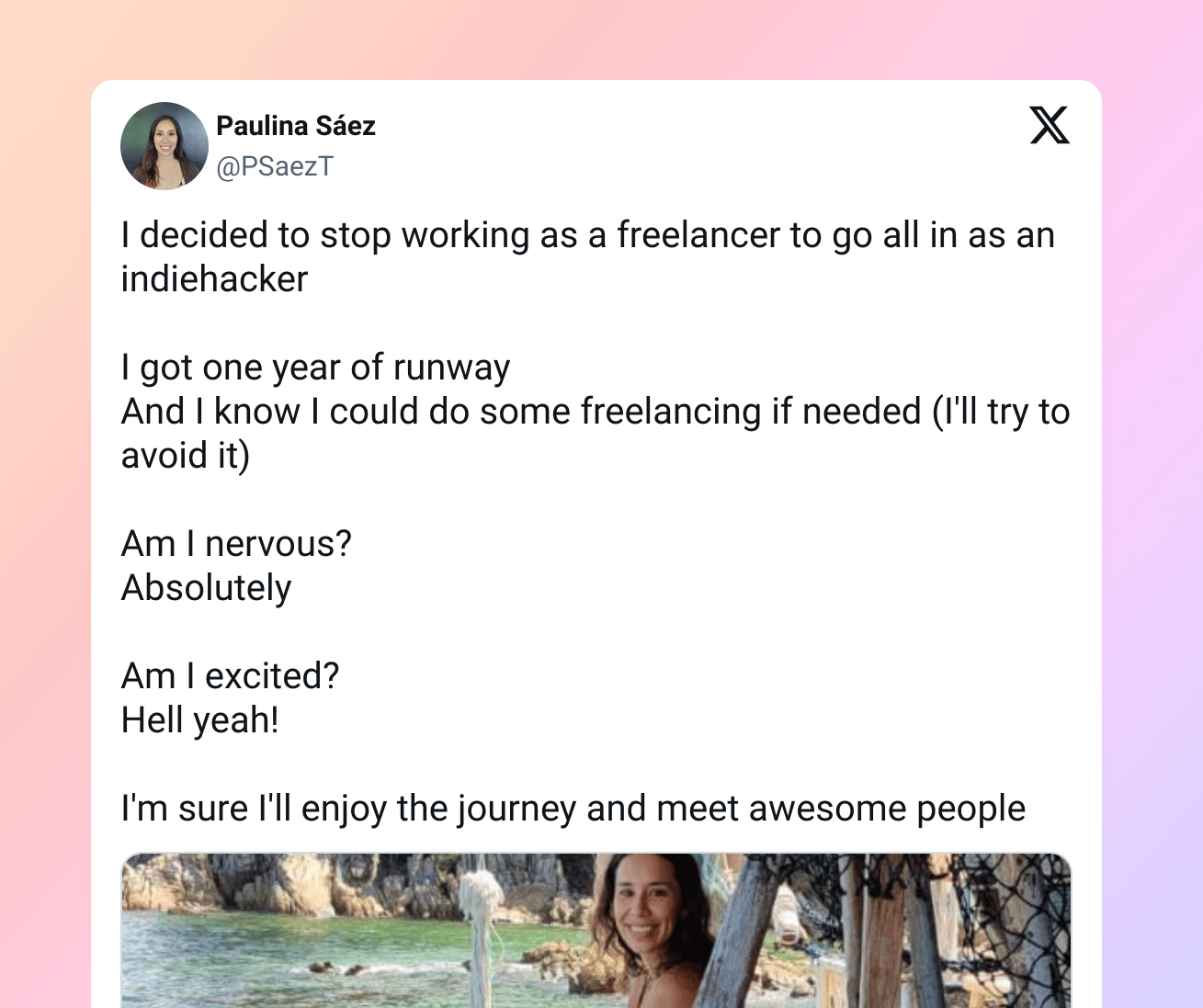 Welcome to UpGroves! Your go-to newsletter for making money online, building an audience, and learning from real-life cases. Without further ado, let's dig in. Lessons learned from getting 200 new followers on X in a single dayLast week I gained 200 followers on X from one single tweet. It might seem small for many but if you consider last week I had 1,000 followers, that's a 20% increase! That means 200 people interested in what I have to say. It's mind-blowing. I like hanging out on Twi-... X. But I've been skeptical about paying for X Premium ever since it came out. Paying $8 a month to Mr. Musk for more visibility? It seemed shallow. I started to create more content that resonated with my current followers, prepped my bio, and added relevant links. Here's when the magic happened. My breakthrough post was about how I decided to stop working as a freelancer to become a full-time indie hacker. This is not my most viral tweet, but it's the one that has got me the most followers of all. And here's what made it work: